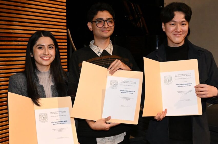 Además, se entregó una Mención de Honor a la tesis “El Remanente: Revitalización Urbana Cuemanco, de la Ciudad de México”, desarrollada por Daniela Fernanda Gómez Cortés, Marco Hwang y Samuel Lozano Sandoval.
