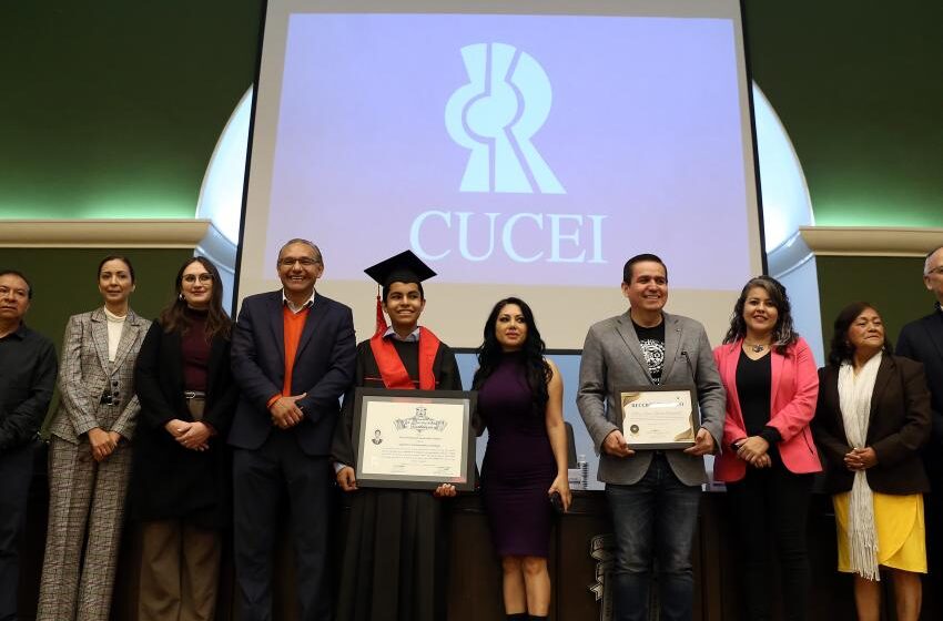 Guadalajara, Jalisco.- 11 de diciembre de 2023.- Con la emoción que representa una meta más alcanzada y acompañado de su familia y amigos, Ian Emmanuel González Santos, de 13 años, recibió su título como Químico Farmacéutico Biólogo del Centro Universitario de Ciencias Exactas e Ingenierías (CUCEI), lo que lo convierte en el egresado más joven en la historia de la Universidad de Guadalajara (UdeG).