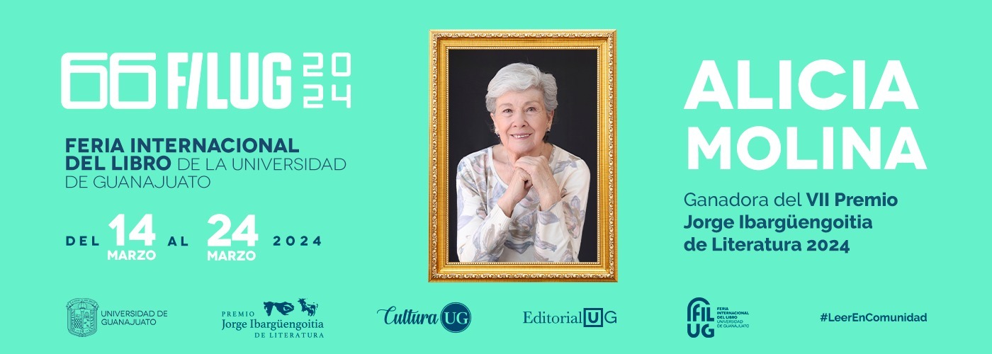 El premio será entregado a la escritora Alicia Molina por la Dra. Claudia Susana Gómez López, Rectora General de la Universidad de Guanajuato, el jueves 14 de marzo de 2024 durante la Ceremonia de Inauguración de la 66a Feria Internacional del Libro de la Universidad de Guanajuato.