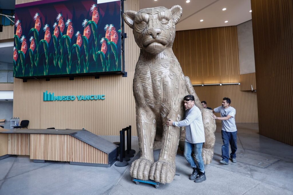 ● A estas nuevas esculturas gigantes se suman un ajolote y un jaguar, especímenes endémicos en peligro de extinción, realizados por el mismo colectivo de artistas en materiales de cartón reciclado