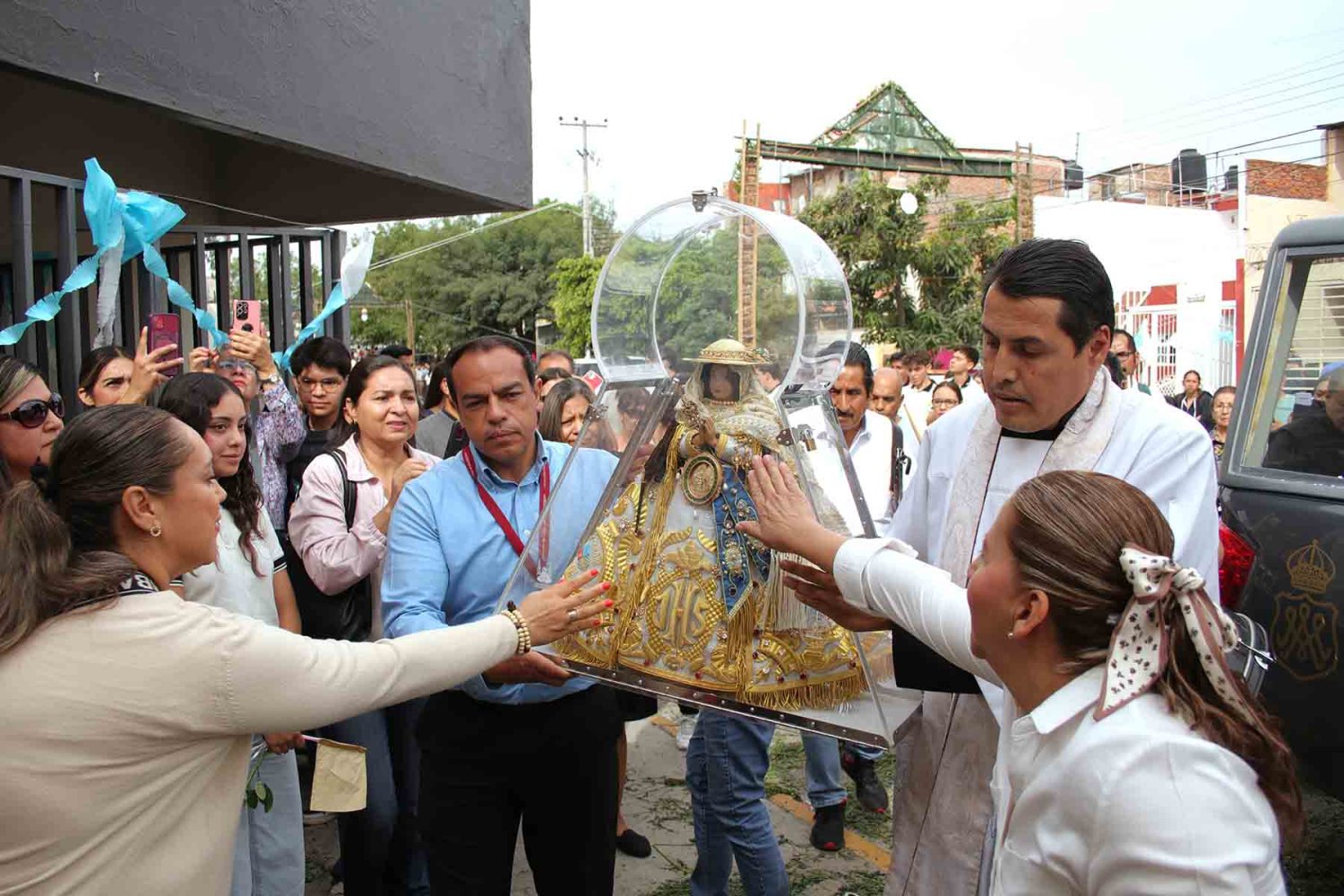 La Virgen continuó su peregrinaje en la Escuela Antonio Caso Zapopan, donde fue recibida con entusiasmo por los estudiantes y la comunidad vecina. El recorrido por las calles cercanas al colegio estuvo marcado por la fe y la devoción de los presentes, quienes acompañaron a la Virgen con cánticos y oraciones.