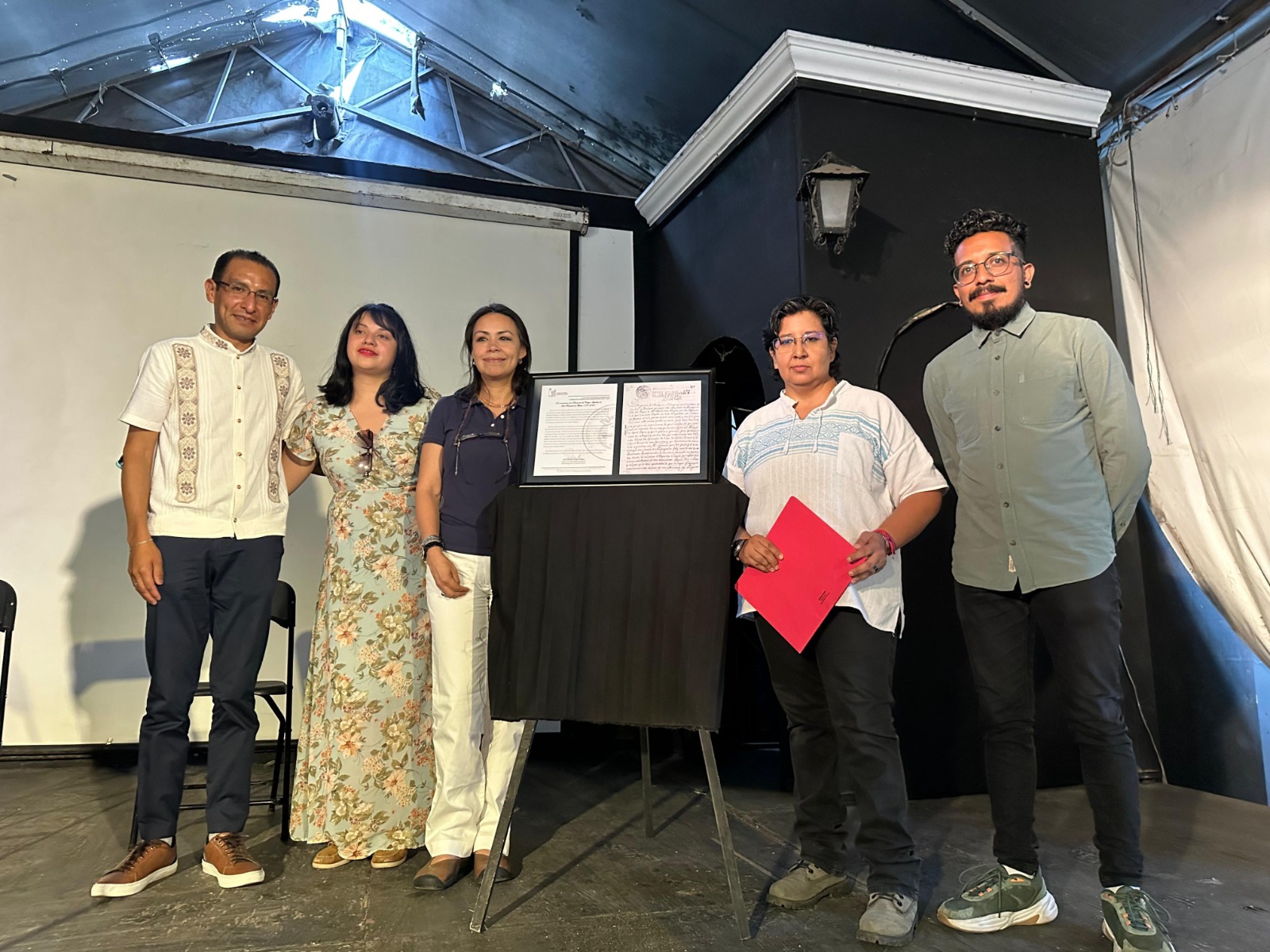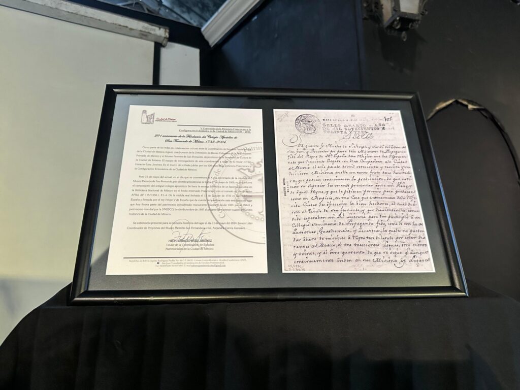 Horacio Báez, titular de la Coordinación de Estudios Patrimoniales, acompañado por Iraís Cruz y María Montoya, autoridades de la Coordinación, indicó que esta celebración coincide con la conmemoración de los 500 años de la llegada de los 12 frailes franciscanos, “cuando en junio de 2023 comenzamos con los trabajos de los 500 años nos encontramos con el Acta de Fundación del Convento de San Fernando, que data de 1733”.