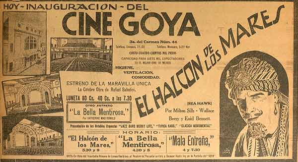 Ayala Blanco mencionó que ese día se estrenaron tres películas “El Halcón de los Mares”; “La bella mentirosa”; y “Su majestad el dinero”, todas silentes, la entrada costaba 50 centavos.