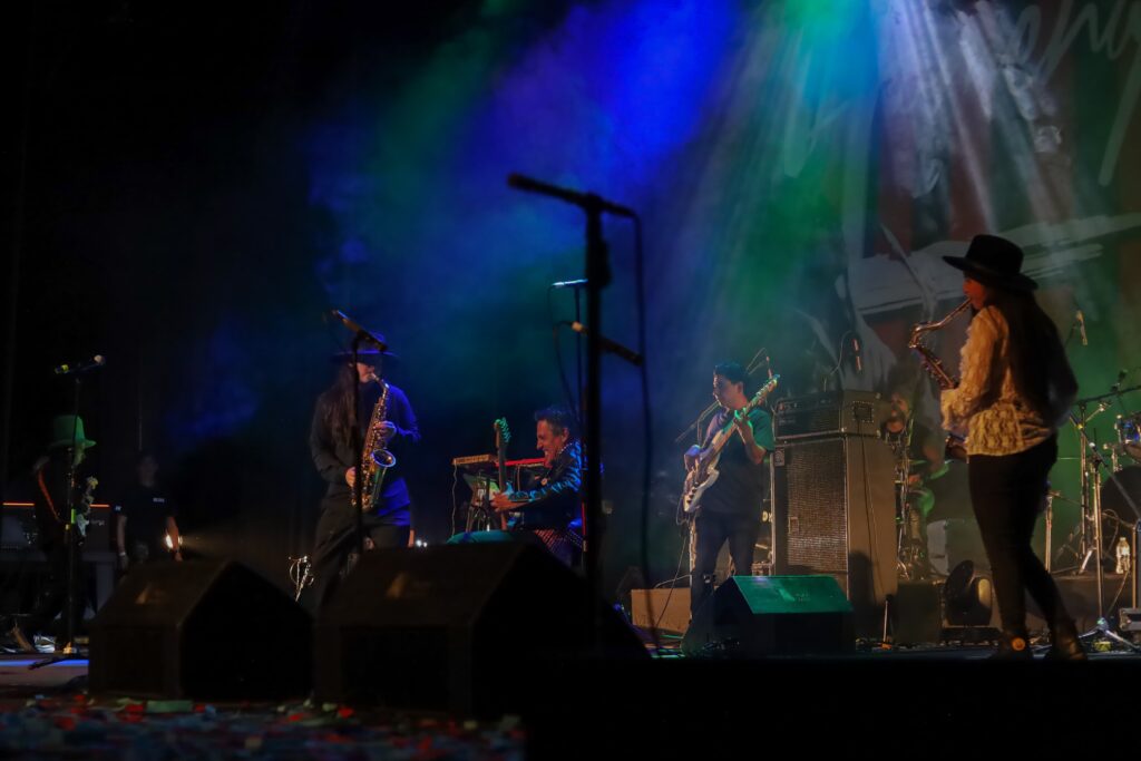 CDMX.- 4 de agosto de 2024.- (https://cultura.cdmx.gob.mx/comunicacion) Con el fin de celebrar y resguardar el legado de Eulalio Cervantes Galarza Sax, saxofonista de Maldita Vecindad y los Hijos del Quinto Patio, la agrupación Malditos de Corazón, encabezada por los hijos del músico, Natasha y Andry Sax, ofreció un concierto en el Teatro de la Ciudad Esperanza Iris, recinto perteneciente a la Secretaría de Cultura de la Ciudad de México, donde interpretaron canciones emblemáticas del artista como “Mujer”, “Rafael” y “Kumbala”.