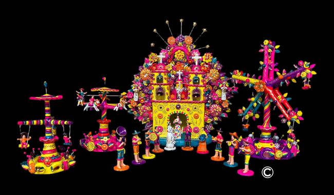CDMX.- 19 de enero de 2025.- (https://www.gob.mx/cultura/prensa) Metepec, Estado de México, es referente en la producción de una colorida y particular artesanía: el Árbol de la vida, fabricado con barro, modelado y pastillaje policromado a mano; de la forma tradicional, representa la escena bíblica de la creación, y, con el paso del tiempo, ha incorporado otras temáticas. Su fabricación suele realizarse en talleres familiares: muestra de ello es el trabajo de la familia Soteno, que lleva cuatro generaciones de cuidar, preservar y difundir este arte.