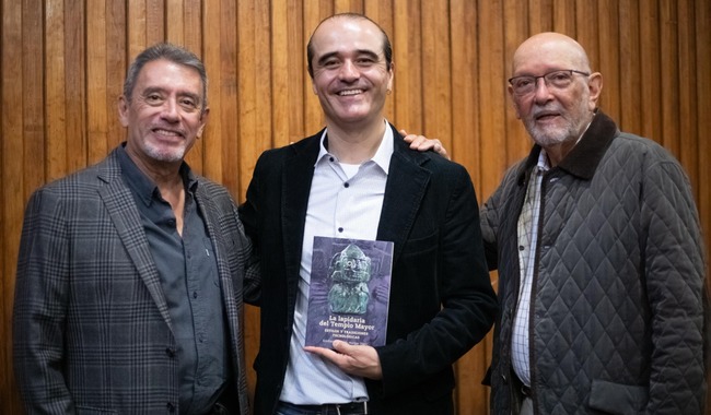 Matos Moctezuma destacó las contribuciones de los investigadores Lourdes Suárez Diez y Adrián Velázquez Castro, este último también partícipe en la presentación, en torno a los objetos malacológicos recuperados en “la casa de Dios”, a las que calificó como pioneras para la elaboración de este acucioso texto sobre lapidaria.