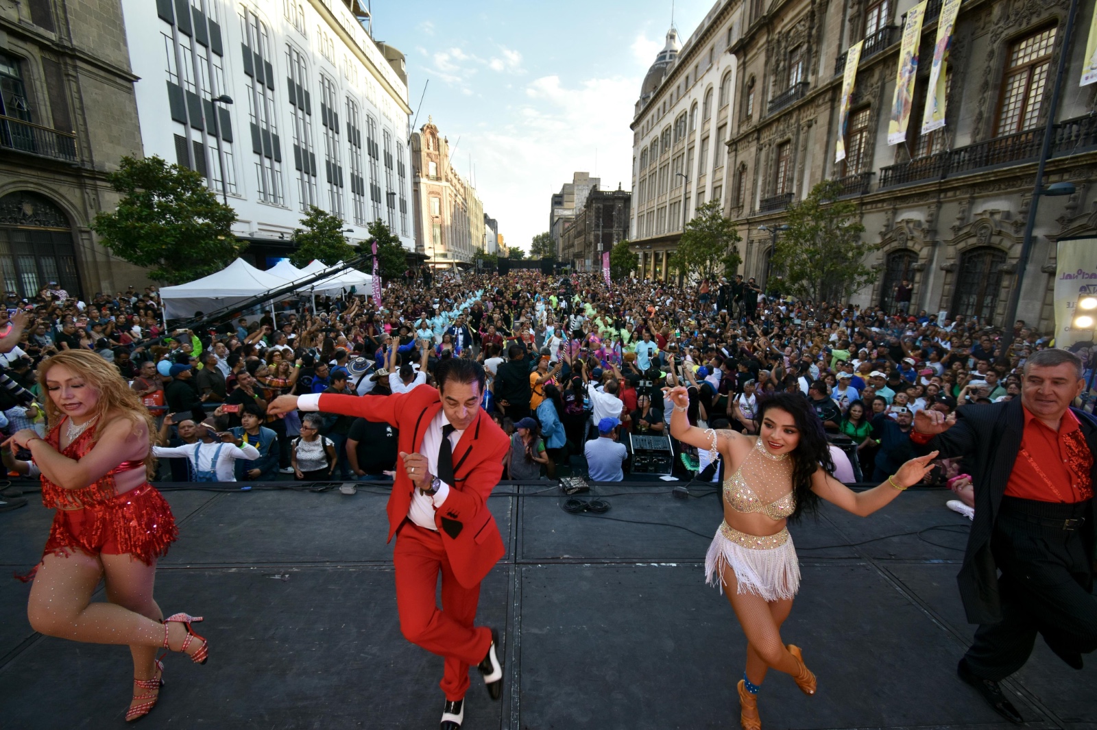 CDMX.- 27 de abril de 2025.- (https://cultura.cdmx.gob.mx/comunicacion) Este sábado 26 de abril, la avenida 20 de noviembre en el Zócalo Capitalino se convirtió en una gran pista de baile para celebrar el Día Internacional de la Danza: Homenaje a Tongolele y Clubes de Baile, evento impulsado por la Secretaría de Cultura de la Ciudad de México, que reunió a 78 clubes, 30 sonideros y más de 3 mil asistentes.