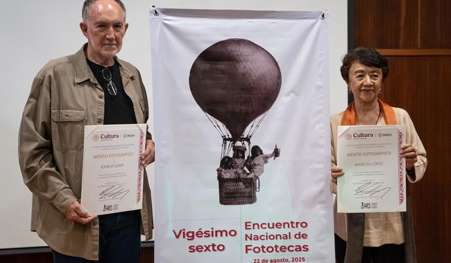 CDMX.- 22 de agosto de 2025.- (https://www.gob.mx/cultura/prensa) El Museo Nacional de Antropología (MNA) abrió sus puertas, el día de hoy, viernes 22 de agosto de 2025, para celebrar la inauguración del XXVI Encuentro Nacional de Fototecas y entregar la Medalla al Mérito Fotográfico 2025, distinción que en la presente edición reconoció la trayectoria de Maritza López y John O’Leary, dos figuras esenciales en la crónica visual de México.
