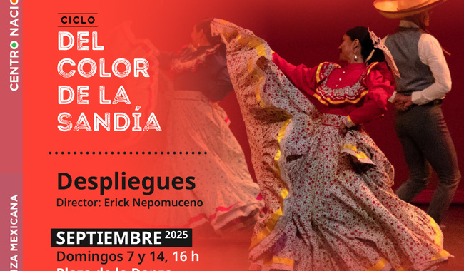 CDMX.- 4 de septiembre de 2025.- (https://www.gob.mx/cultura/prensa) El Centro Nacional de las Artes (CENART), institución de la Secretaría de Cultura del Gobierno de México, se suma a la conmemoración por la Independencia de México con el ciclo “Del color de la sandía” que, del 6 al 14 de septiembre, en las plazas de las Artes y de la Danza, ofrecerá tres espectáculos de música y danza que despliegan todo el folklor nacional.