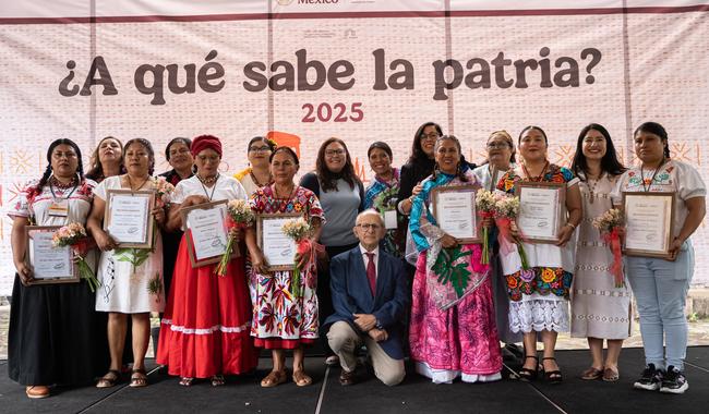 CDMX.- 27 de septiembre de 2025.- (https://www.gob.mx/cultura/prensa) En el marco del Año de la Mujer Indígena, la Plaza Jacarandas del Complejo Cultural Los Pinos fue sede de la ceremonia de premiación de la quinta edición de la convocatoria ¿A qué sabe la patria?, en la que se reconoció a cinco colectivas cuyas recetas fueron ganadoras y cinco que recibieron menciones honoríficas.