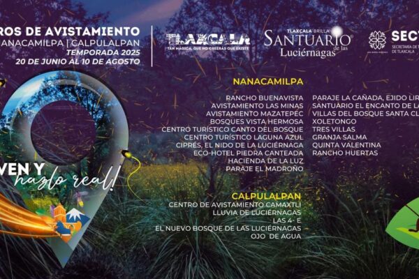 Hasta el 10 de agosto, Nanacamilpa y Calpulalpan recibirán a turistas nacionales y extranjeros para presenciar uno de los espectáculos naturales más emblemáticos de México Tlaxcala, México.- 26 de julio de 2025.- (https://comunicacion.tlaxcala.gob.mx/) La magia natural de Tlaxcala vuelve a brillar con la llegada de la Temporada de Avistamiento de Luciérnagas 2025, que se lleva…