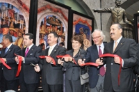 Un total de 30 reproducciones digitales impresas sobre lona de los murales que pintó Diego Rivera entre 1923 y 1928 en la Secretaría de Educación Pública (SEP) se exhiben desde este martes 8 de diciembre en el Patio Central de la sede del Senado de la República como parte de las